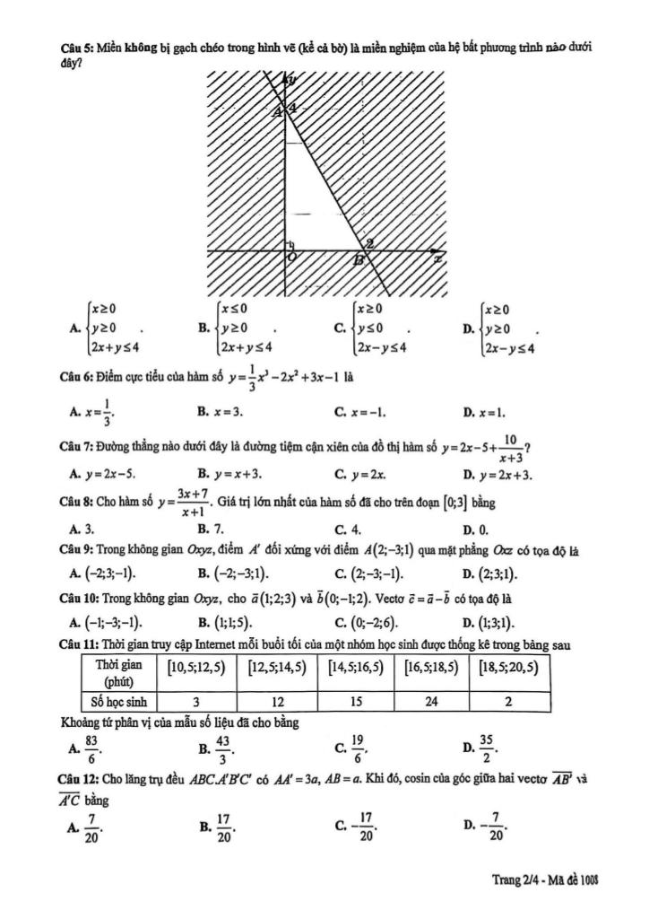 Toán học luôn là một môn học quan trọng, giúp học sinh phát triển tư duy logic và kỹ năng giải quyết vấn đề. Để hỗ trợ các bạn học sinh và giáo viên trong việc học tập và giảng dạy, bài viết này sẽ cung cấp lời giải chi tiết và đáp án chính xác cho chủ đề đề khảo sát chất lượng toán 12 đợt 1 năm 2025 – 2026 sở gd&đt phú thọ, giúp bạn hiểu sâu và tự tin hơn khi làm bài tập.