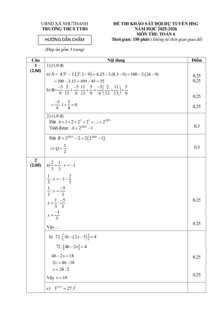 Giải Toán đề khảo sát hsg toán 6 năm 2025 – 2026 trường thcs tt bến sung – thanh hóa với Đáp Án Mới Nhất