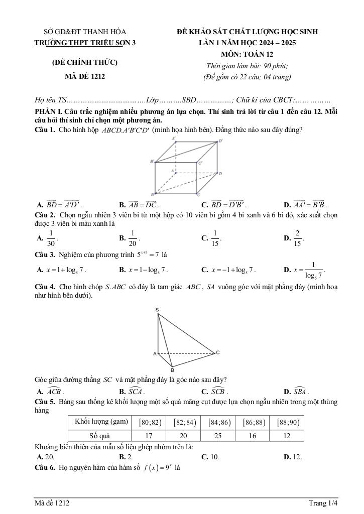 Toán học luôn là một môn học quan trọng, giúp học sinh phát triển tư duy logic và kỹ năng giải quyết vấn đề. Để hỗ trợ các bạn học sinh và giáo viên trong việc học tập và giảng dạy, bài viết này sẽ cung cấp lời giải chi tiết và đáp án chính xác cho chủ đề đề khảo sát lần 1 toán 12 năm 2025 – 2026 trường thpt triệu sơn 3 – thanh hóa, giúp bạn hiểu sâu và tự tin hơn khi làm bài tập.