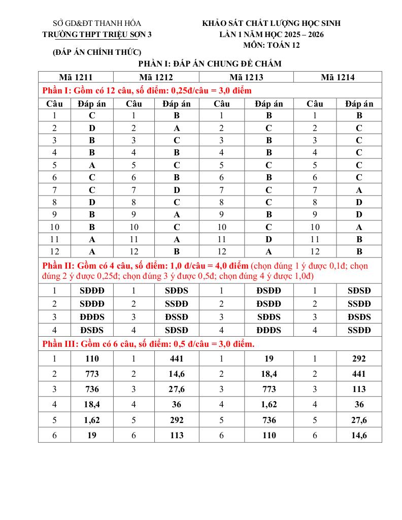 Xem thêm đáp án: đề khảo sát lần 1 toán 12 năm 2025 – 2026 trường thpt triệu sơn 3 – thanh hóa