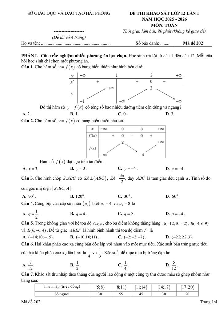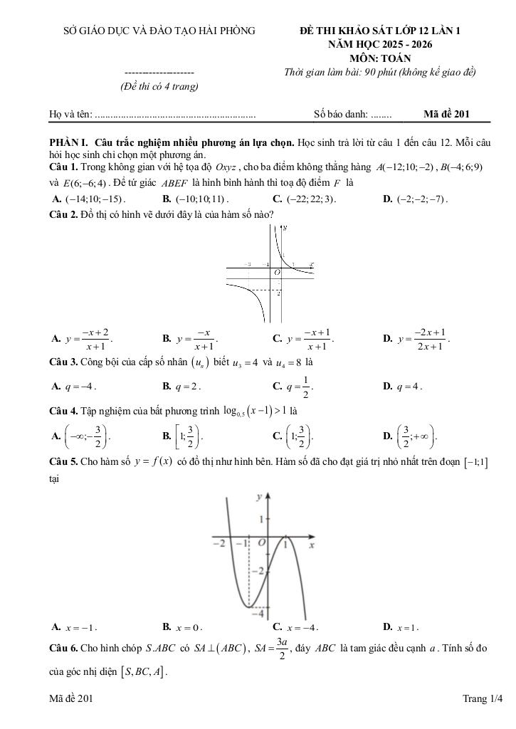 Toán học luôn là một môn học quan trọng, giúp học sinh phát triển tư duy logic và kỹ năng giải quyết vấn đề. Để hỗ trợ các bạn học sinh và giáo viên trong việc học tập và giảng dạy, bài viết này sẽ cung cấp lời giải chi tiết và đáp án chính xác cho chủ đề đề khảo sát toán 12 lần 1 năm 2025 – 2026 liên trường thpt – hải phòng, giúp bạn hiểu sâu và tự tin hơn khi làm bài tập.
