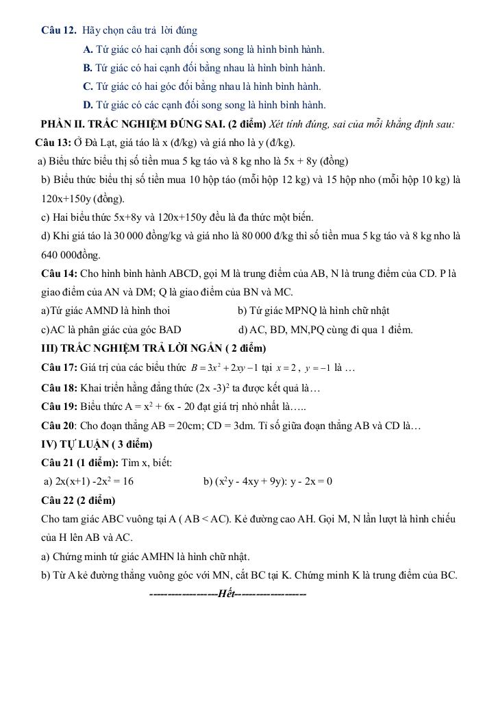 đề khảo sát toán 8 tháng 11 năm 2025 trường thcs hiệp lực – hải phòng là một trong những phần kiến thức quan trọng trong chương trình toán học, thường xuất hiện trong các bài kiểm tra và kỳ thi lớn. Việc nắm vững phần này không chỉ giúp bạn đạt điểm cao mà còn tạo nền tảng vững chắc để học các nội dung nâng cao hơn.