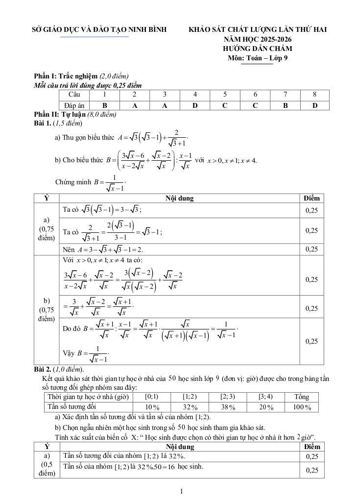 Giải Toán đề khảo sát toán 9 lần 2 năm 2025 – 2026 sở gd&đt ninh bình với Đáp Án Mới Nhất