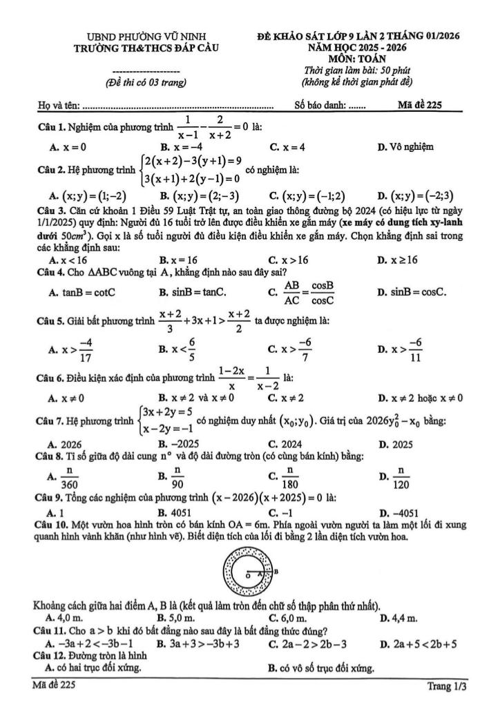 Toán học luôn là một môn học quan trọng, giúp học sinh phát triển tư duy logic và kỹ năng giải quyết vấn đề. Để hỗ trợ các bạn học sinh và giáo viên trong việc học tập và giảng dạy, bài viết này sẽ cung cấp lời giải chi tiết và đáp án chính xác cho chủ đề đề khảo sát toán 9 lần 2 năm 2025 – 2026 trường th&thcs đáp cầu – bắc ninh, giúp bạn hiểu sâu và tự tin hơn khi làm bài tập.