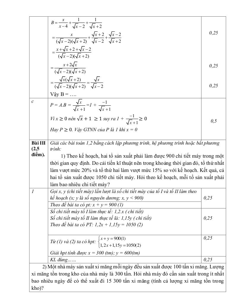 + Theo kế hoạch, hai tổ sản xuất phải làm được 900 chi tiết máy trong một thời gian quy định. Do cải tiến kĩ thuật nên trong khoảng thời gian đó, tổ thứ nhất làm vượt mức 20% và tổ thứ hai làm vượt mức 15% so với kế hoạch. Kết quả, cả hai tổ sản xuất được 1050 chi tiết máy. Hỏi theo kế hoạch, mỗi tổ sản xuất phải làm bao nhiêu chi tiết máy?