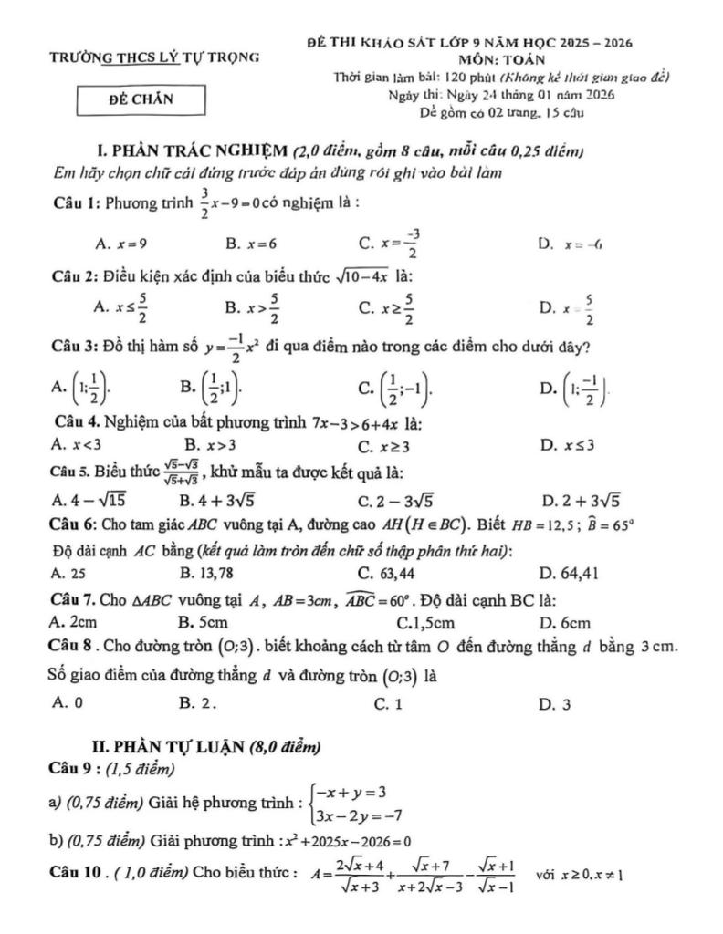 Toán học luôn là một môn học quan trọng, giúp học sinh phát triển tư duy logic và kỹ năng giải quyết vấn đề. Để hỗ trợ các bạn học sinh và giáo viên trong việc học tập và giảng dạy, bài viết này sẽ cung cấp lời giải chi tiết và đáp án chính xác cho chủ đề đề khảo sát toán 9 năm 2025 – 2026 trường thcs lý tự trọng – thanh hóa, giúp bạn hiểu sâu và tự tin hơn khi làm bài tập.
