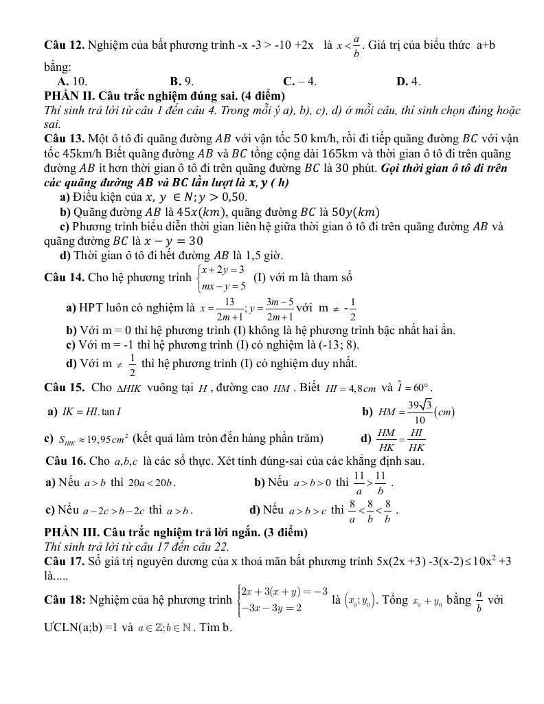 Toán học luôn là một môn học quan trọng, giúp học sinh phát triển tư duy logic và kỹ năng giải quyết vấn đề. Để hỗ trợ các bạn học sinh và giáo viên trong việc học tập và giảng dạy, bài viết này sẽ cung cấp lời giải chi tiết và đáp án chính xác cho chủ đề đề khảo sát toán 9 tháng 11 năm 2025 trường thcs hiệp lực – hải phòng, giúp bạn hiểu sâu và tự tin hơn khi làm bài tập.
