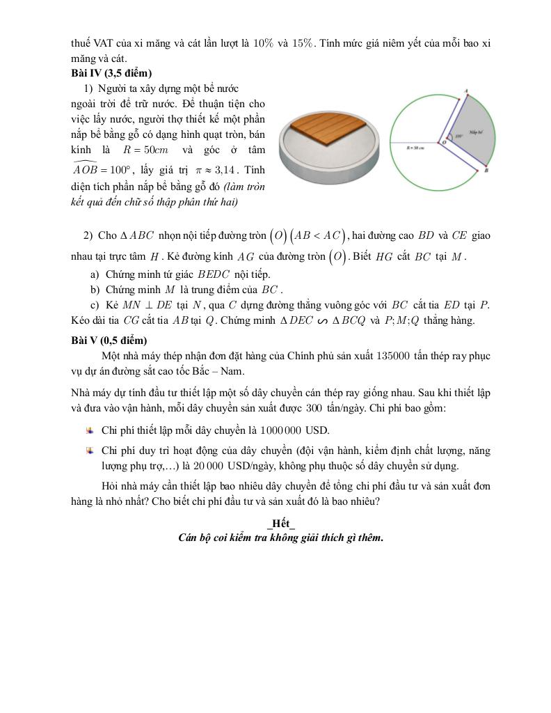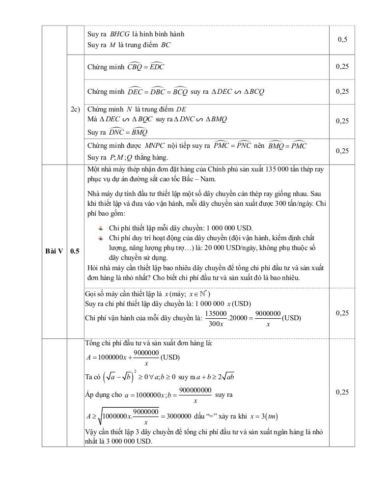 + Một nhà máy thép nhận đơn đặt hàng của Chính phủ sản xuất 135000 tấn thép ray phục vụ dự án đường sắt cao tốc Bắc – Nam. Nhà máy dự tính đầu tư thiết lập một số dây chuyền cán thép ray giống nhau. Sau khi thiết lập và đưa vào vận hành, mỗi dây chuyền sản xuất được 300 tấn/ngày. Chi phí bao gồm: Chi phí thiết lập mỗi dây chuyền là 1 000 000 USD. Chi phí duy trì hoạt động của dây chuyền (đội vận hành, kiểm định chất lượng, năng lượng phụ trợ, …) là 20 000 USD/ngày, không phụ thuộc số dây chuyền sử dụng. Hỏi nhà máy cần thiết lập bao nhiêu dây chuyền để tổng chi phí đầu tư và sản xuất đơn hàng là nhỏ nhất? Cho biết chi phí đầu tư và sản xuất đó là bao nhiêu?
