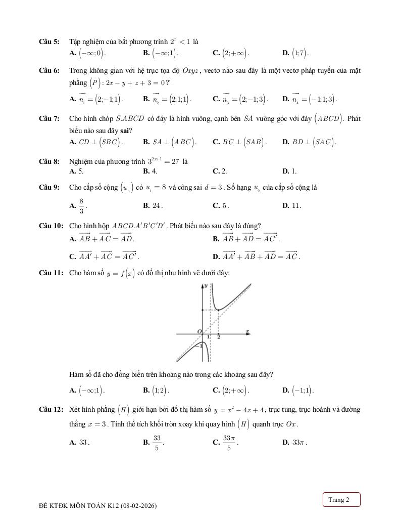 Toán học luôn là một môn học quan trọng, giúp học sinh phát triển tư duy logic và kỹ năng giải quyết vấn đề. Để hỗ trợ các bạn học sinh và giáo viên trong việc học tập và giảng dạy, bài viết này sẽ cung cấp lời giải chi tiết và đáp án chính xác cho chủ đề đề kiểm tra toán 12 tháng 2 năm 2026 trường lê thánh tông – tp hcm, giúp bạn hiểu sâu và tự tin hơn khi làm bài tập.