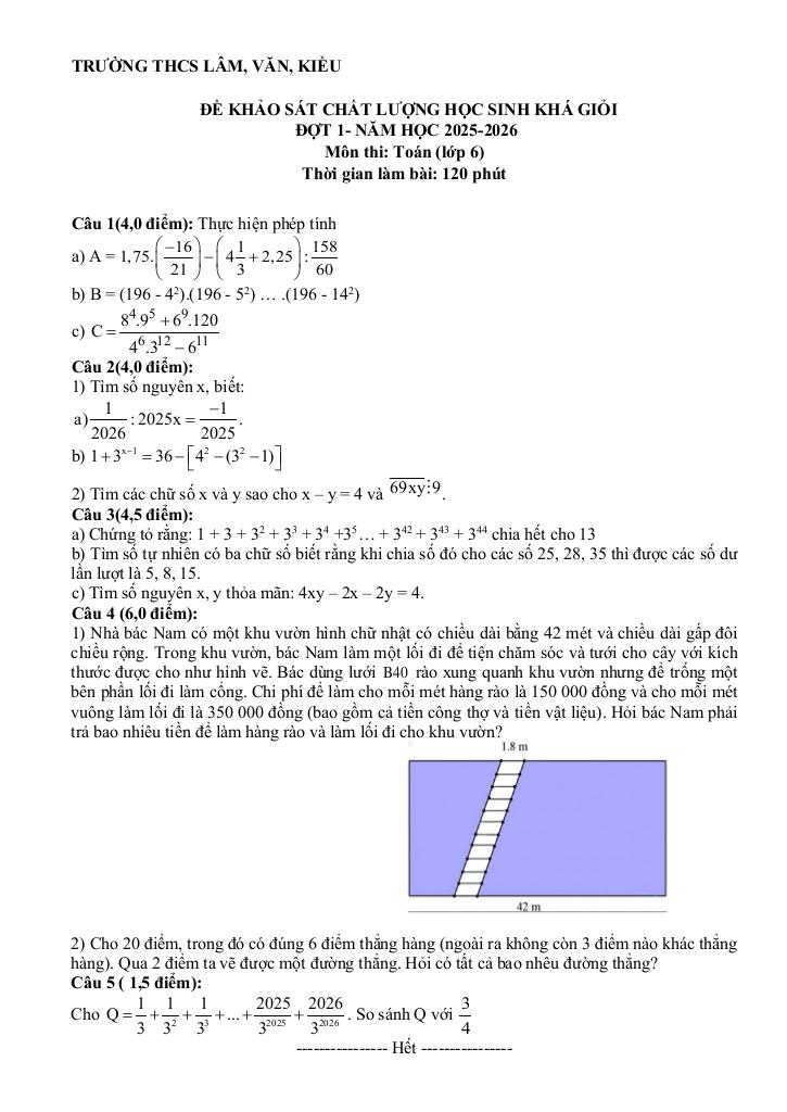 Trích dẫn Đề KSCL học sinh giỏi Toán 6 đợt 1 năm 2025 – 2026 cụm THCS Lâm-Văn-Kiều – Nghệ An:
