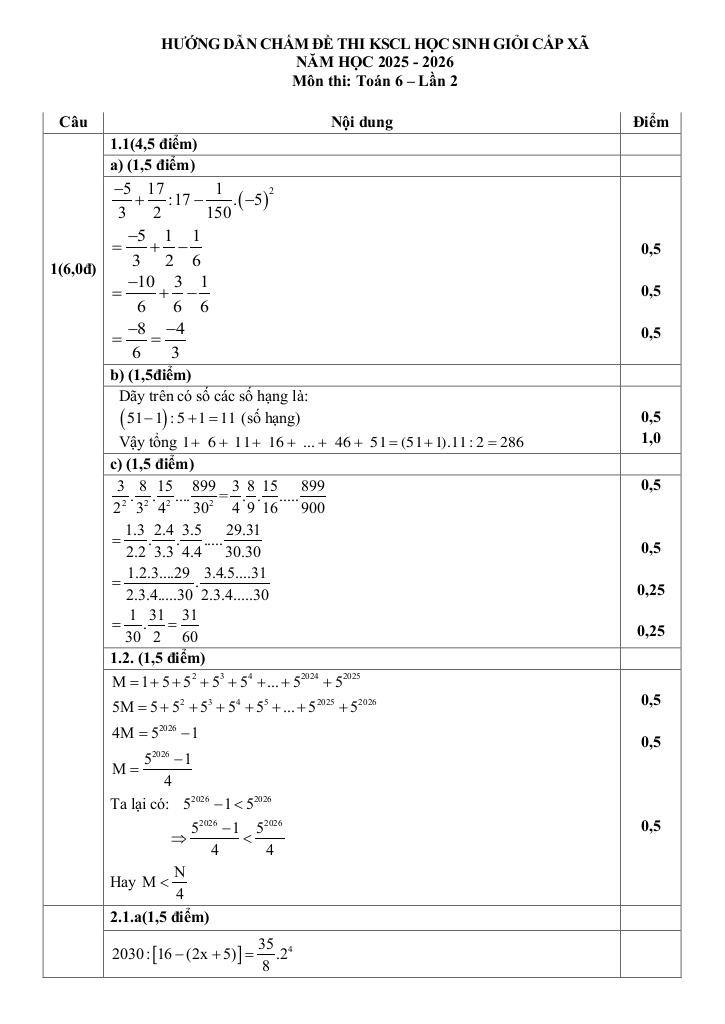 Giải Toán đề kscl học sinh giỏi toán 6 lần 2 năm 2025 – 2026 cụm thcs lâm-văn-kiều – nghệ an với Đáp Án Mới Nhất