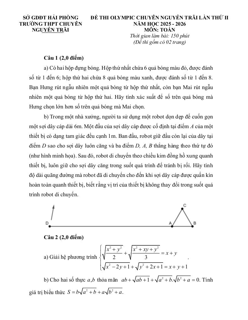 Giải Toán đề olympic toán thcs lần 2 năm 2025 – 2026 trường chuyên nguyễn trãi – hải phòng với Đáp Án Mới Nhất