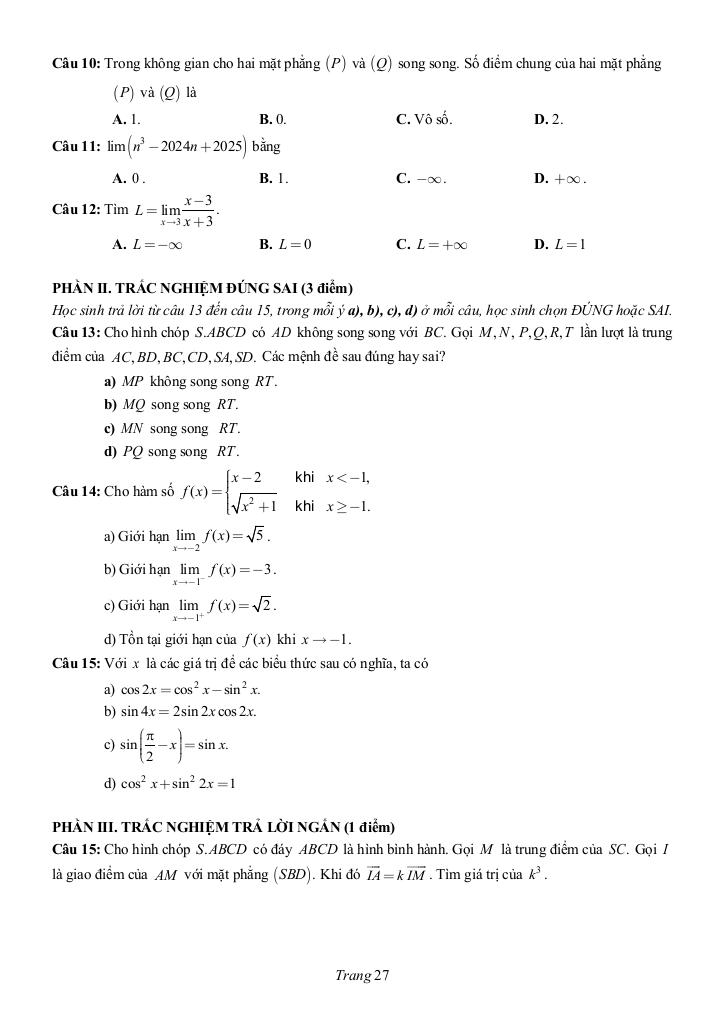 Toán học luôn là một môn học quan trọng, giúp học sinh phát triển tư duy logic và kỹ năng giải quyết vấn đề. Để hỗ trợ các bạn học sinh và giáo viên trong việc học tập và giảng dạy, bài viết này sẽ cung cấp lời giải chi tiết và đáp án chính xác cho chủ đề đề ôn tập ck1 toán 11 năm 2025 – 2026 trường chuyên lương văn chánh – đắk lắk, giúp bạn hiểu sâu và tự tin hơn khi làm bài tập.