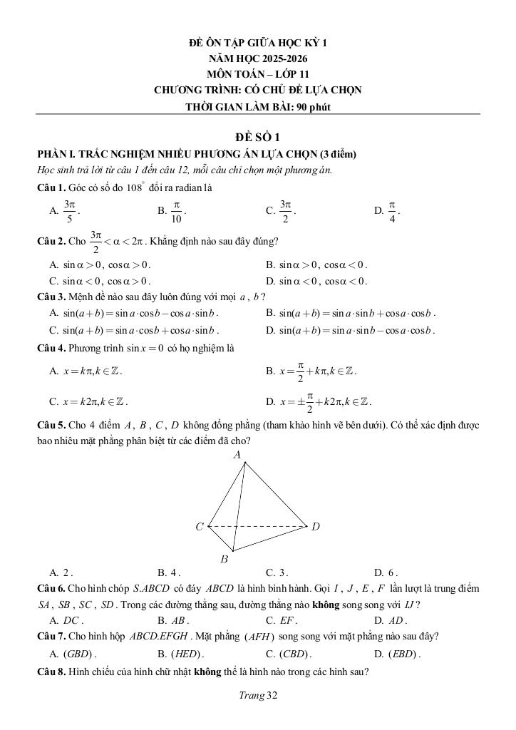 >> Xem thêm đáp án chi tiết về: đề ôn tập ck1 toán 11 năm 2025 – 2026 trường chuyên lương văn chánh – đắk lắk.