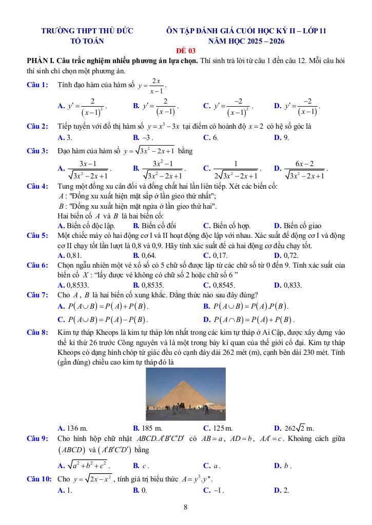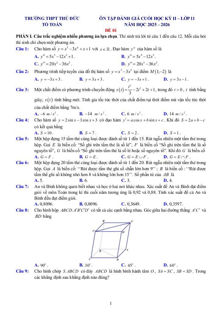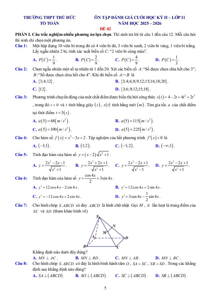 đề ôn tập cuối học kỳ 2 toán 11 năm 2025 – 2026 trường thpt thủ đức – tp hcm – hành trang không thể thiếu trong chuyên mục