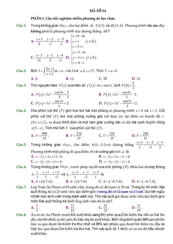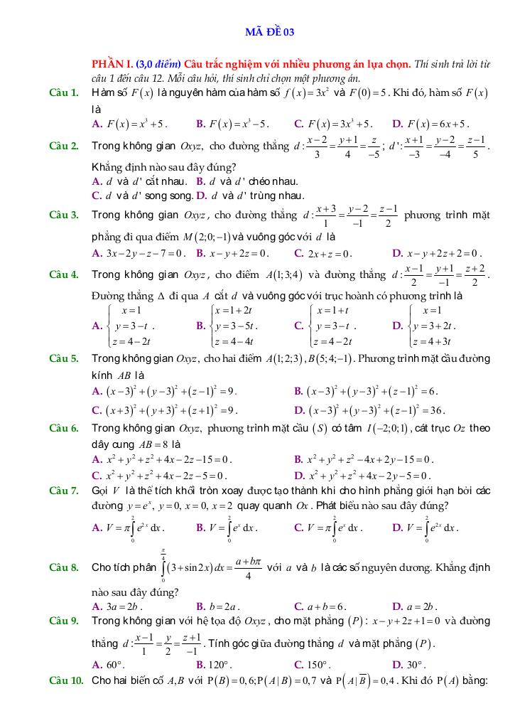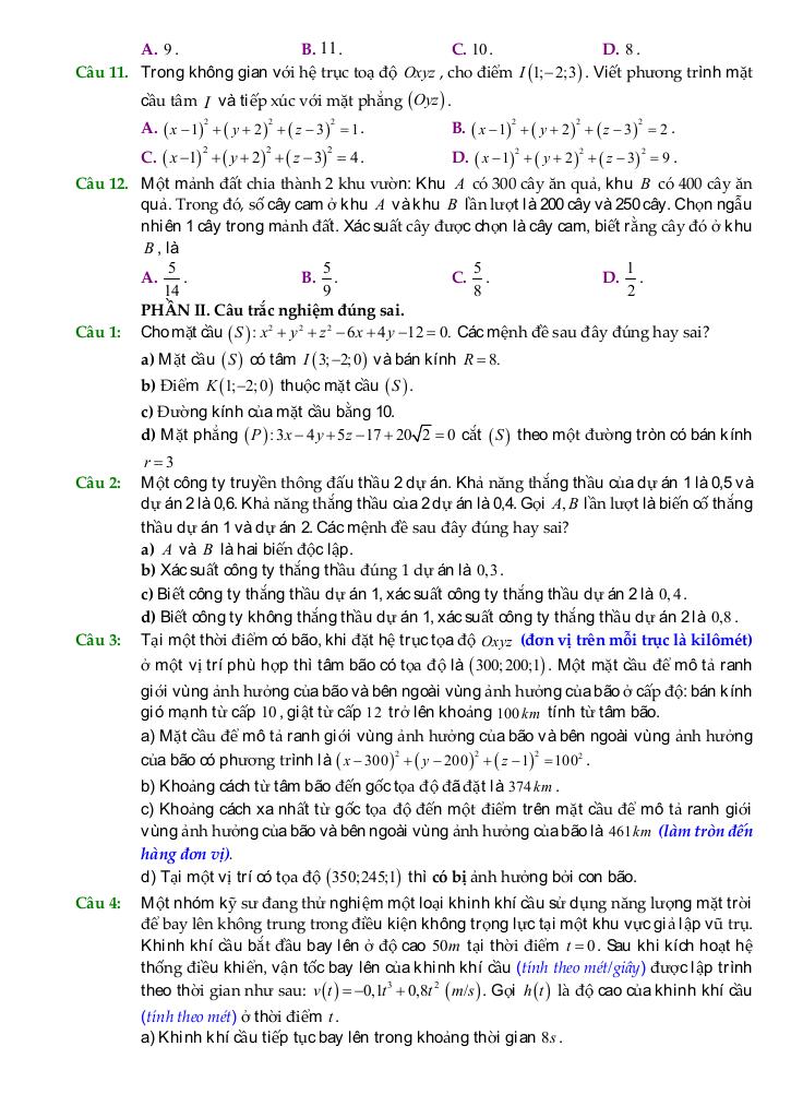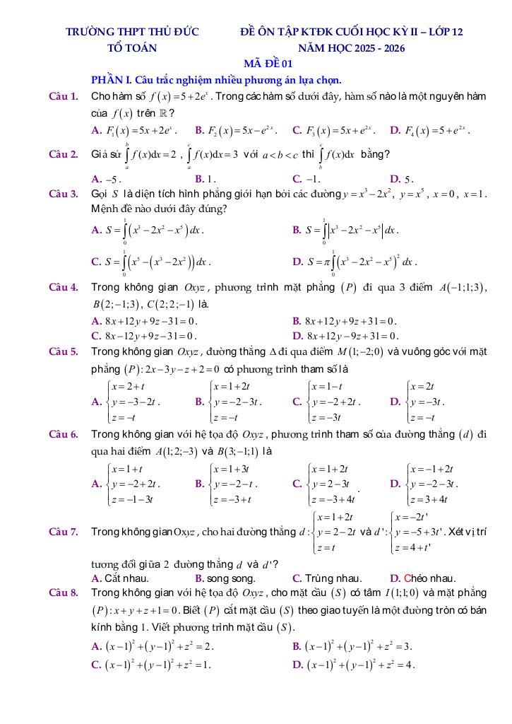 Toán học luôn là một môn học quan trọng, giúp học sinh phát triển tư duy logic và kỹ năng giải quyết vấn đề. Để hỗ trợ các bạn học sinh và giáo viên trong việc học tập và giảng dạy, bài viết này sẽ cung cấp lời giải chi tiết và đáp án chính xác cho chủ đề đề ôn tập cuối học kỳ 2 toán 12 năm 2025 – 2026 trường thpt thủ đức – tp hcm, giúp bạn hiểu sâu và tự tin hơn khi làm bài tập.
