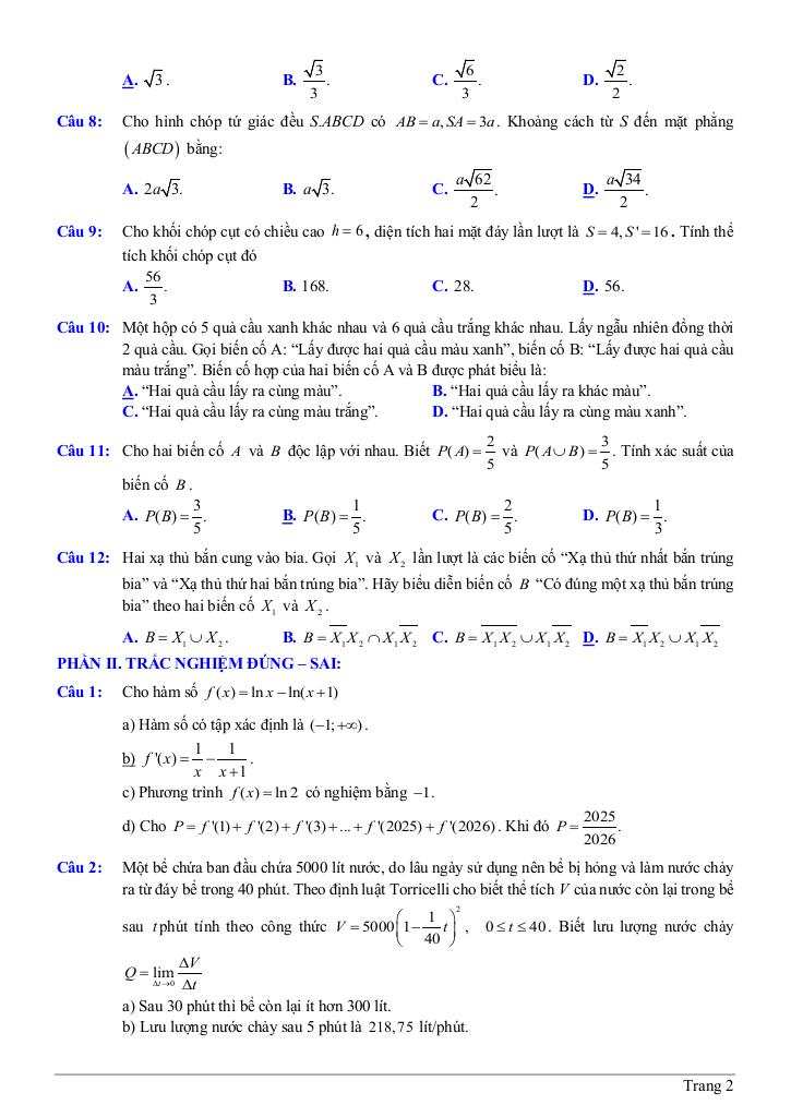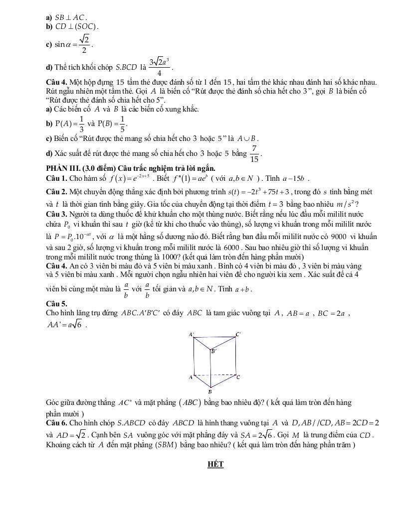 >> Xem thêm đáp án chi tiết về: đề ôn tập cuối kì 2 toán 11 năm 2025 – 2026 trường thpt marie curie – tp hcm.