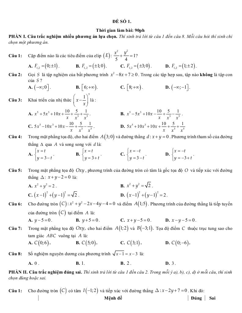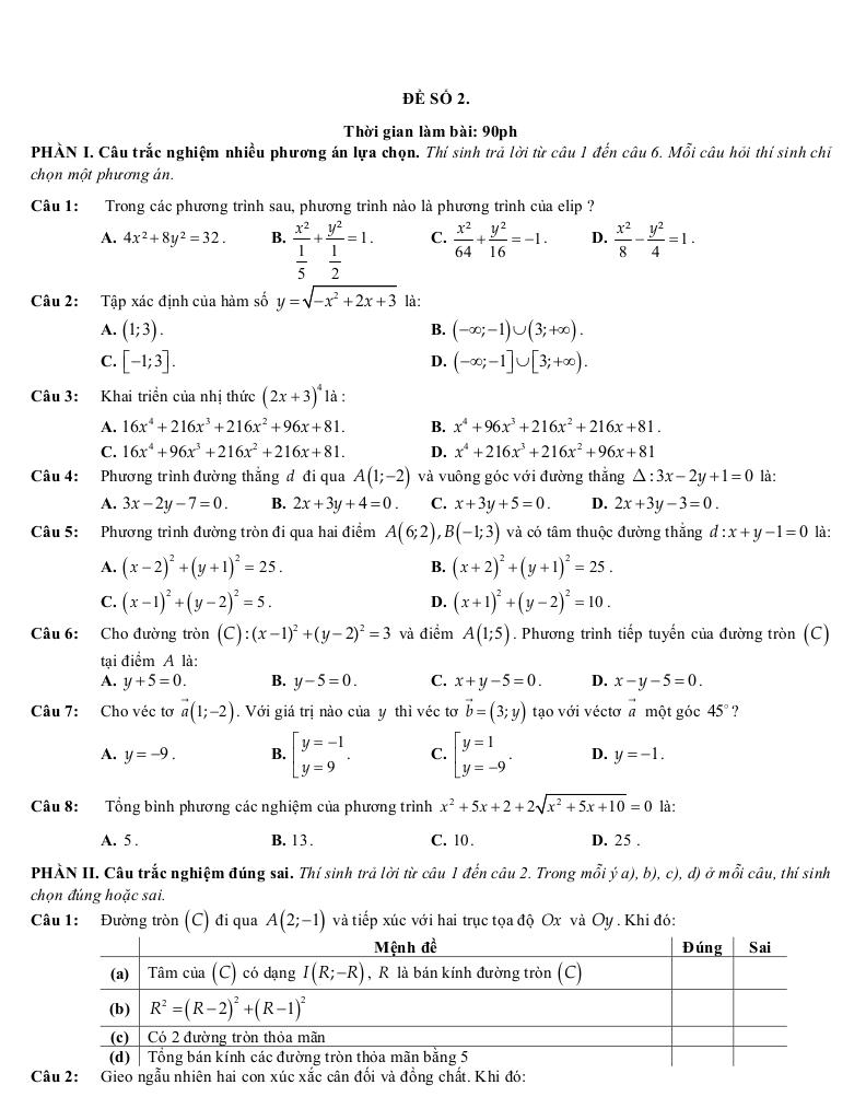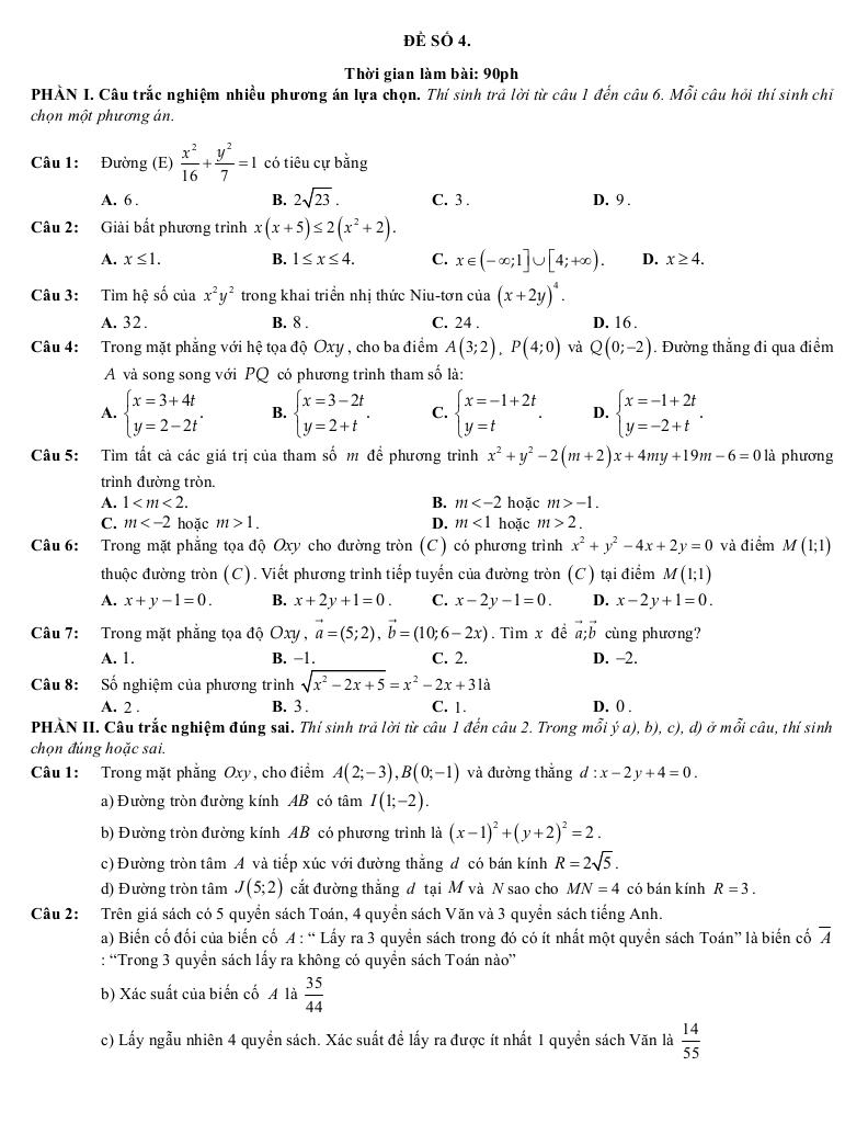 Giải Toán đề ôn tập hk2 toán 10 năm 2025 – 2026 trường thpt nguyễn thị minh khai – tp hcm với Đáp Án Mới Nhất