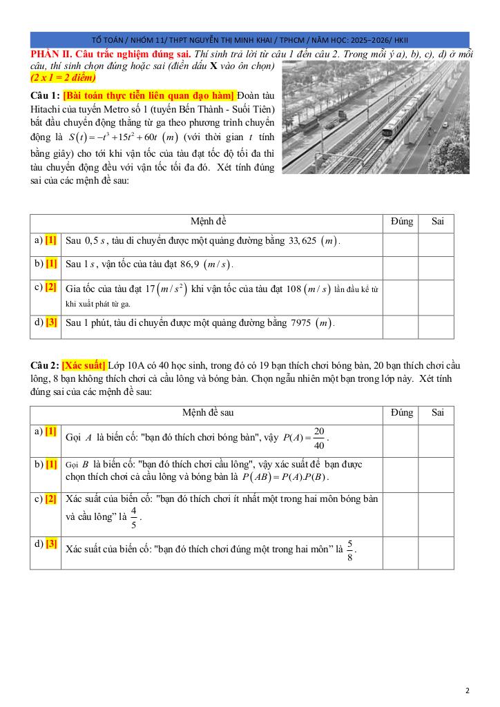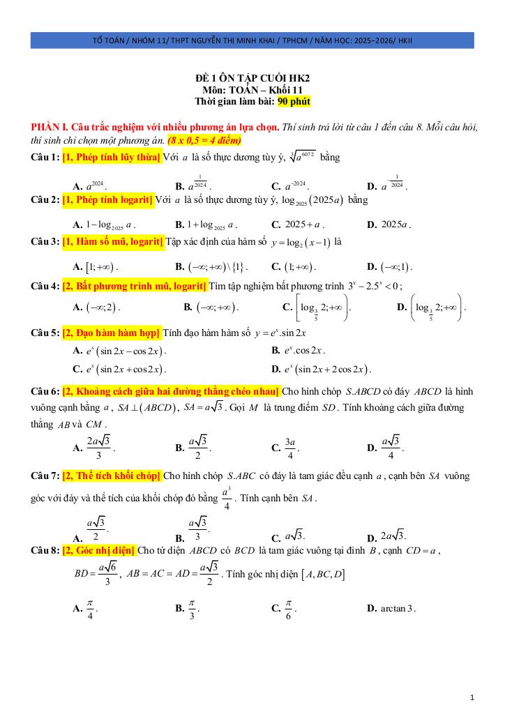 Toán học luôn là một môn học quan trọng, giúp học sinh phát triển tư duy logic và kỹ năng giải quyết vấn đề. Để hỗ trợ các bạn học sinh và giáo viên trong việc học tập và giảng dạy, bài viết này sẽ cung cấp lời giải chi tiết và đáp án chính xác cho chủ đề đề ôn tập hk2 toán 11 năm 2025 – 2026 trường thpt nguyễn thị minh khai – tp hcm, giúp bạn hiểu sâu và tự tin hơn khi làm bài tập.