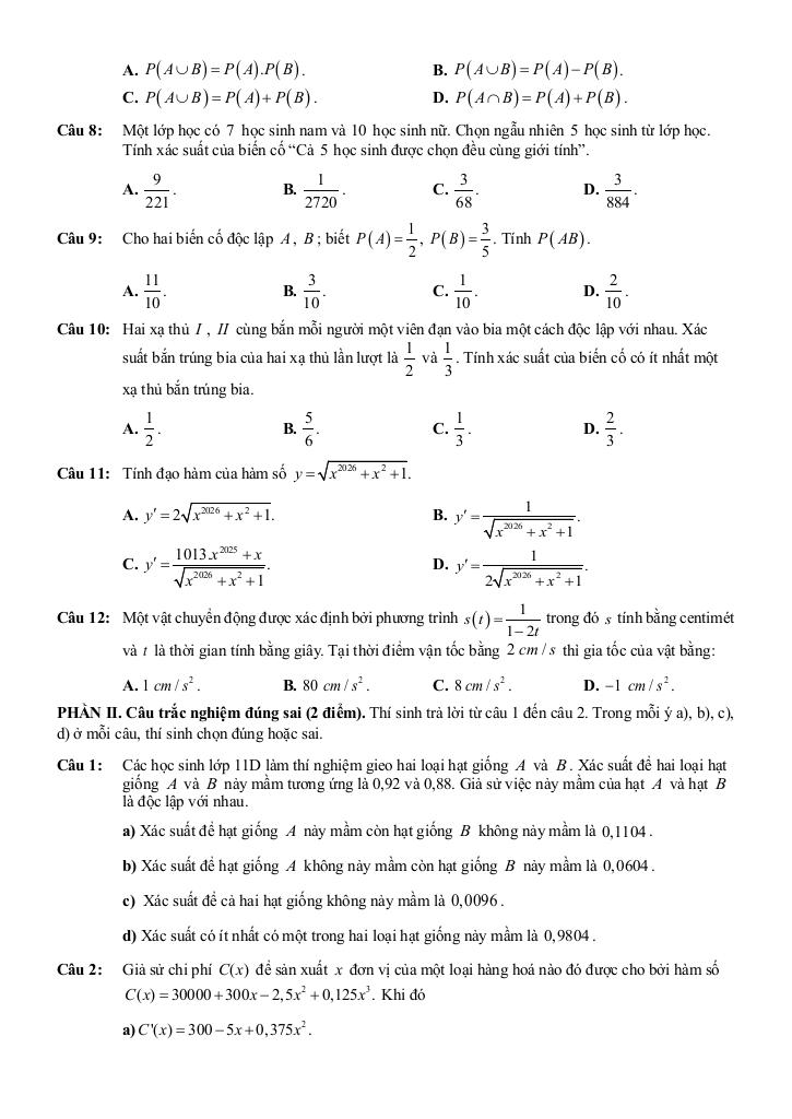 Toán học luôn là một môn học quan trọng, giúp học sinh phát triển tư duy logic và kỹ năng giải quyết vấn đề. Để hỗ trợ các bạn học sinh và giáo viên trong việc học tập và giảng dạy, bài viết này sẽ cung cấp lời giải chi tiết và đáp án chính xác cho chủ đề đề ôn tập hk2 toán 11 năm 2025 – 2026 trường thpt triệu quang phục – hưng yên, giúp bạn hiểu sâu và tự tin hơn khi làm bài tập.