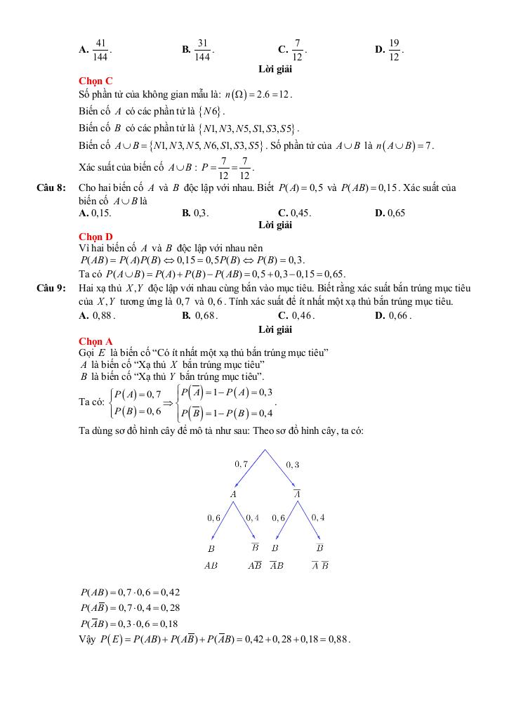+ Có hai thùng hàng, lấy ngẫu nhiên ở mỗi thùng hàng một sản phẩm. Biết xác suất để lấy được một sản phẩm tốt ở thùng 1 là 0,5; xác suất để lấy được một sản phẩm tốt ở thùng 2 là 0,7. Tính xác suất để lấy được ít nhất một sản phẩm tốt?