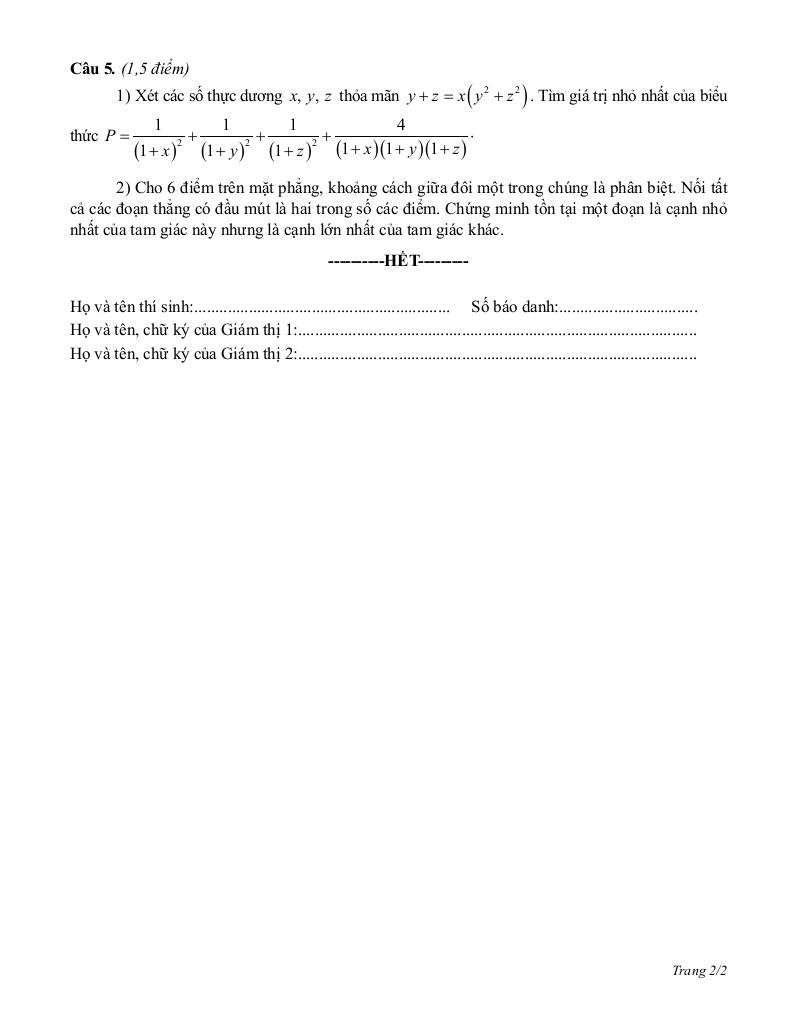 – Thí sinh được sử dụng kiến thức sau đây mà không phải chứng minh: Quan hệ giữa cạnh và đường cao trong tam giác vuông; bất đẳng AM-GM, Cauchy-Schwarz.