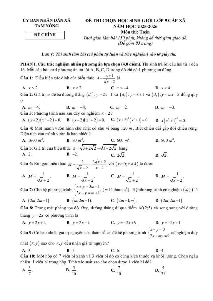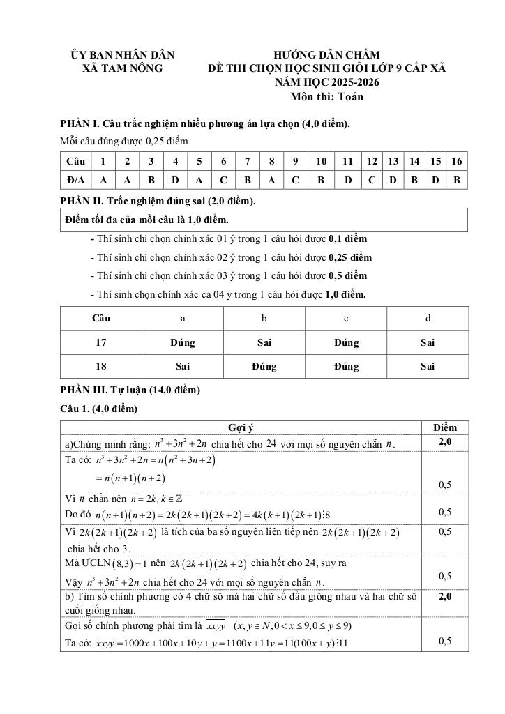Giải Toán đề thi chọn học sinh giỏi toán 9 năm 2025 – 2026 xã tam nông – phú thọ với Đáp Án Mới Nhất