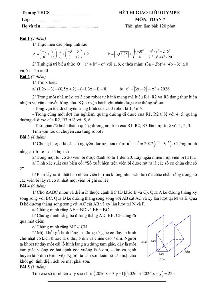 Trích dẫn Đề thi giao lưu Olympic Toán 7 năm 2025 – 2026 cụm trường THCS – Hà Nội: