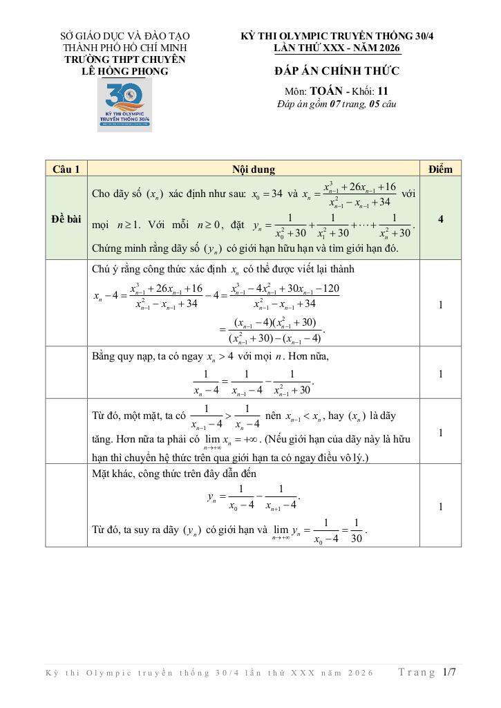 Giải Toán đề thi olympic 30 tháng 04 năm 2026 toán 11 trường chuyên lê hồng phong – tp hcm với Đáp Án Mới Nhất