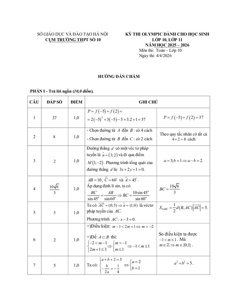 Giải Toán đề thi olympic toán 10 năm 2025 – 2026 cụm trường thpt số 10 – hà nội với Đáp Án Mới Nhất