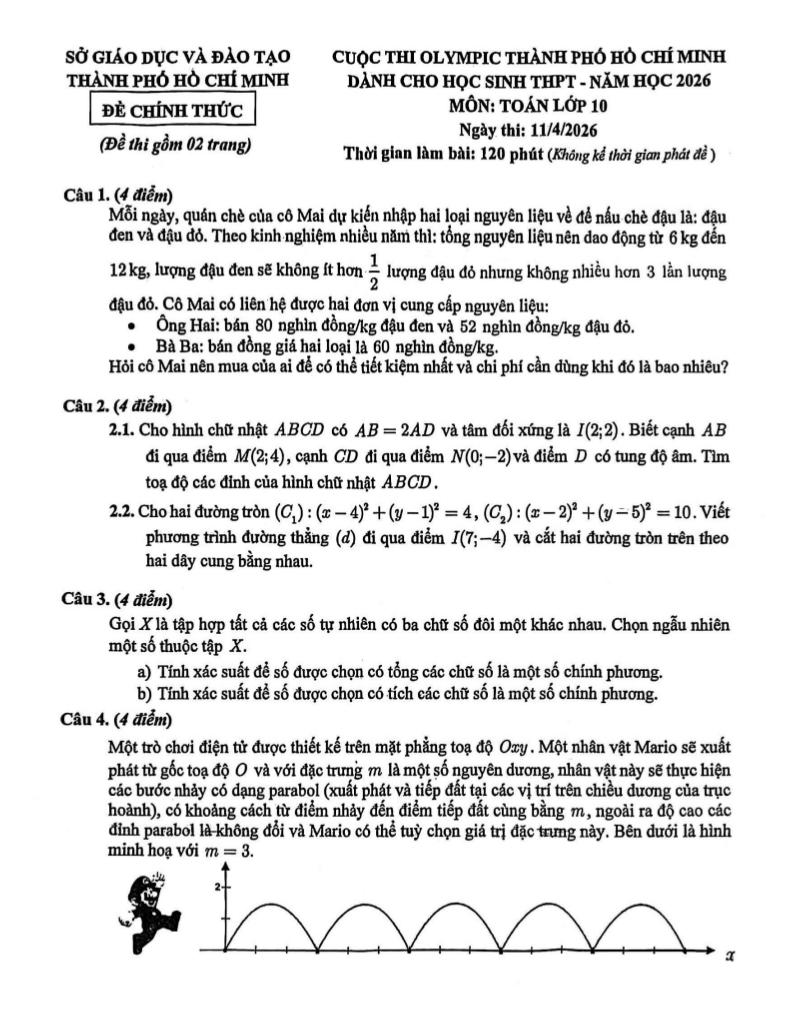 Toán học luôn là một môn học quan trọng, giúp học sinh phát triển tư duy logic và kỹ năng giải quyết vấn đề. Để hỗ trợ các bạn học sinh và giáo viên trong việc học tập và giảng dạy, bài viết này sẽ cung cấp lời giải chi tiết và đáp án chính xác cho chủ đề đề thi olympic toán 10 năm 2025 – 2026 sở gd&đt tp hồ chí minh, giúp bạn hiểu sâu và tự tin hơn khi làm bài tập.