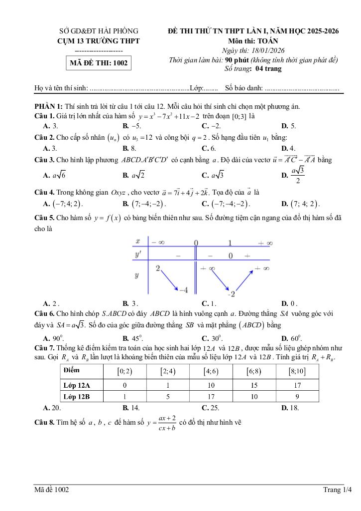 Toán học luôn là một môn học quan trọng, giúp học sinh phát triển tư duy logic và kỹ năng giải quyết vấn đề. Để hỗ trợ các bạn học sinh và giáo viên trong việc học tập và giảng dạy, bài viết này sẽ cung cấp lời giải chi tiết và đáp án chính xác cho chủ đề đề thi thử tn thpt 2026 lần 1 môn toán cụm 13 trường thpt – hải phòng, giúp bạn hiểu sâu và tự tin hơn khi làm bài tập.