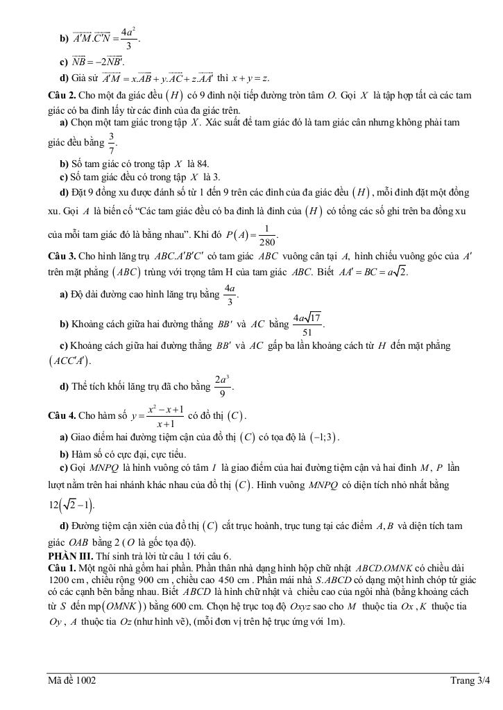 Xem thêm đáp án: đề thi thử tn thpt 2026 lần 1 môn toán cụm 13 trường thpt – hải phòng