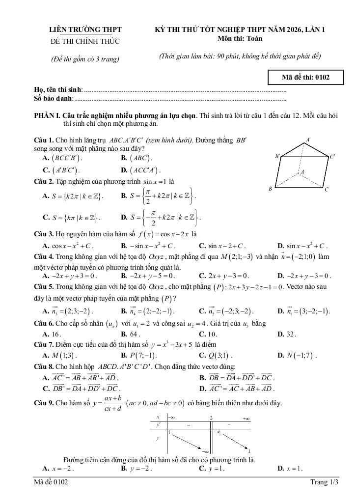 Toán học luôn là một môn học quan trọng, giúp học sinh phát triển tư duy logic và kỹ năng giải quyết vấn đề. Để hỗ trợ các bạn học sinh và giáo viên trong việc học tập và giảng dạy, bài viết này sẽ cung cấp lời giải chi tiết và đáp án chính xác cho chủ đề đề thi thử tn thpt 2026 lần 1 môn toán liên trường thpt – hà tĩnh, giúp bạn hiểu sâu và tự tin hơn khi làm bài tập.