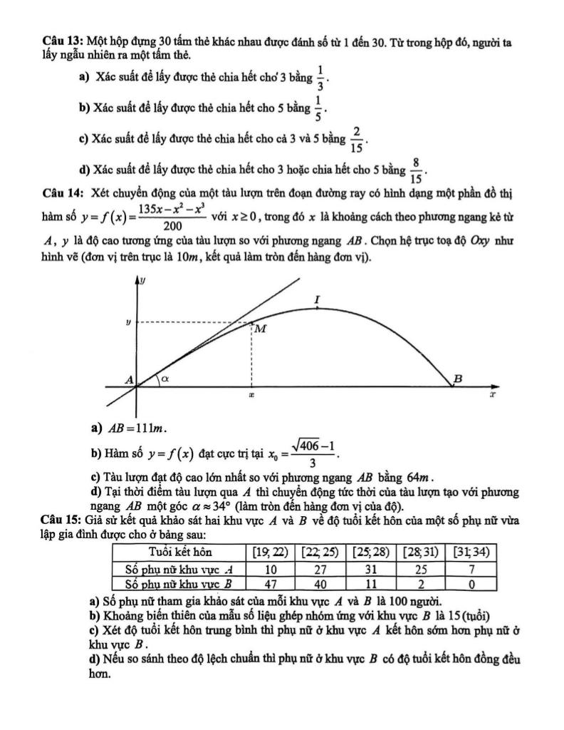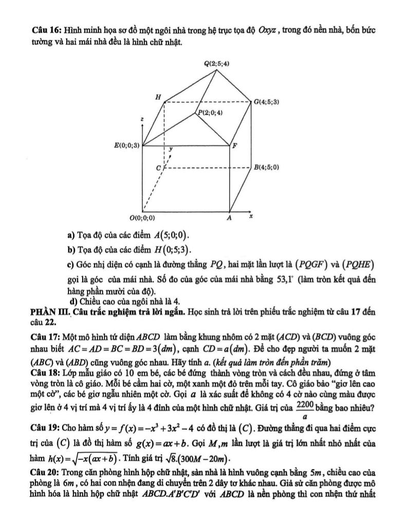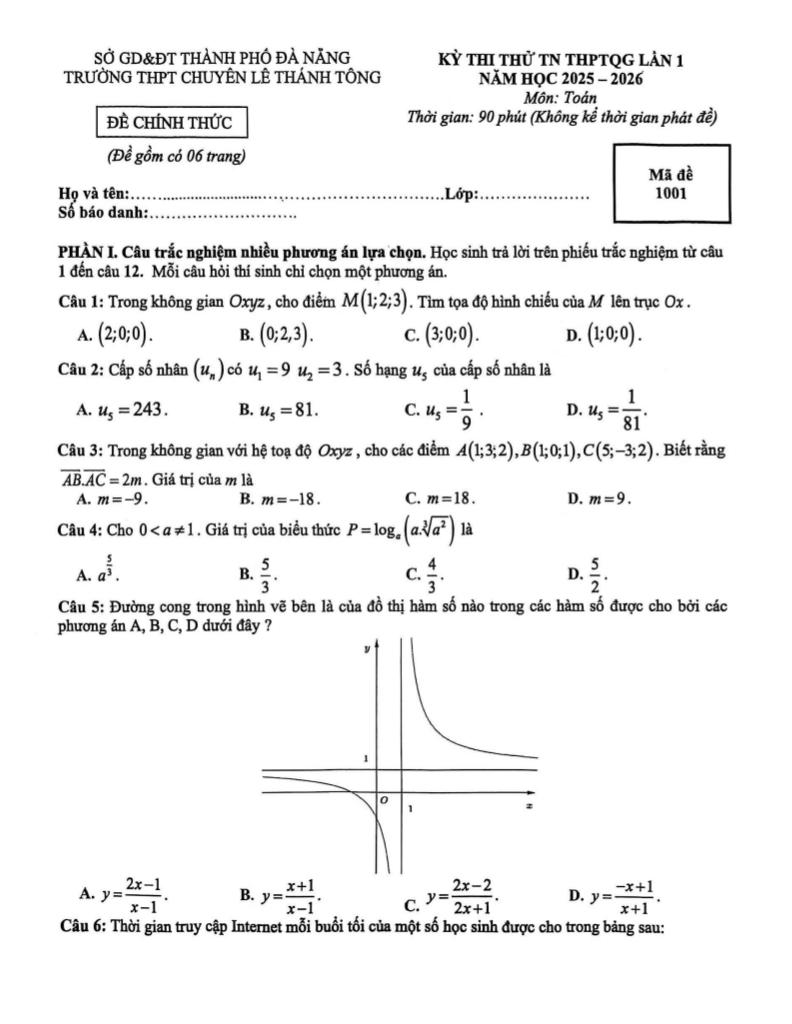 Trích dẫn Đề thi thử TN THPT 2026 lần 1 môn Toán trường chuyên Lê Thánh Tông – Đà Nẵng: