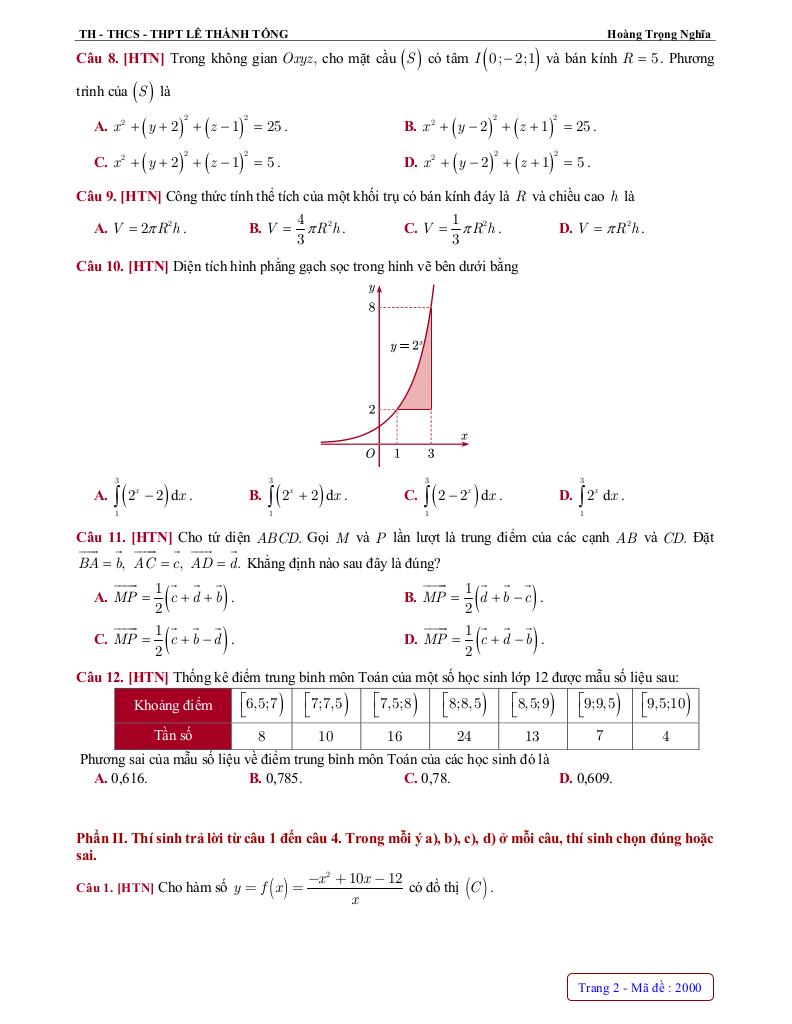 Giải Toán đề thi thử tn thpt 2026 lần 2 môn toán trường lê thánh tông – tp hcm với Đáp Án Mới Nhất