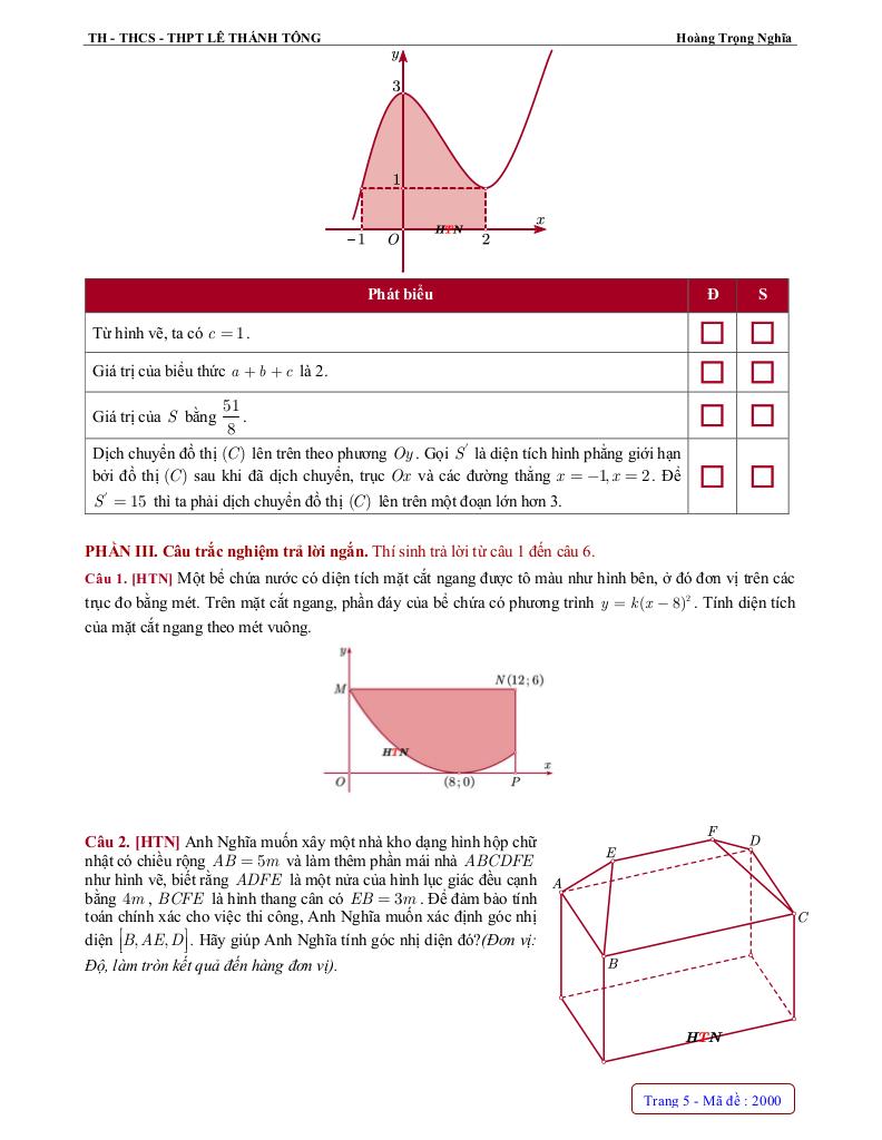 Toán học luôn là một môn học quan trọng, giúp học sinh phát triển tư duy logic và kỹ năng giải quyết vấn đề. Để hỗ trợ các bạn học sinh và giáo viên trong việc học tập và giảng dạy, bài viết này sẽ cung cấp lời giải chi tiết và đáp án chính xác cho chủ đề đề thi thử tn thpt 2026 lần 2 môn toán trường lê thánh tông – tp hcm, giúp bạn hiểu sâu và tự tin hơn khi làm bài tập.