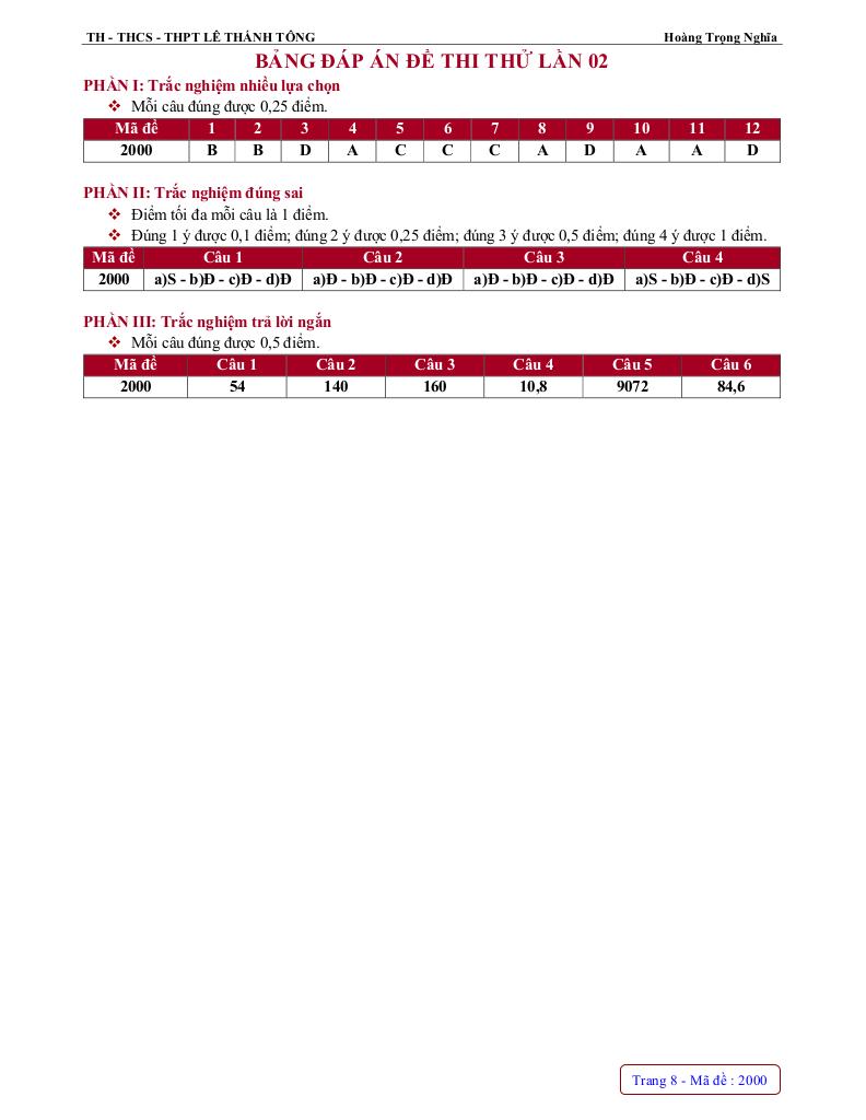 Xem thêm đáp án: đề thi thử tn thpt 2026 lần 2 môn toán trường lê thánh tông – tp hcm