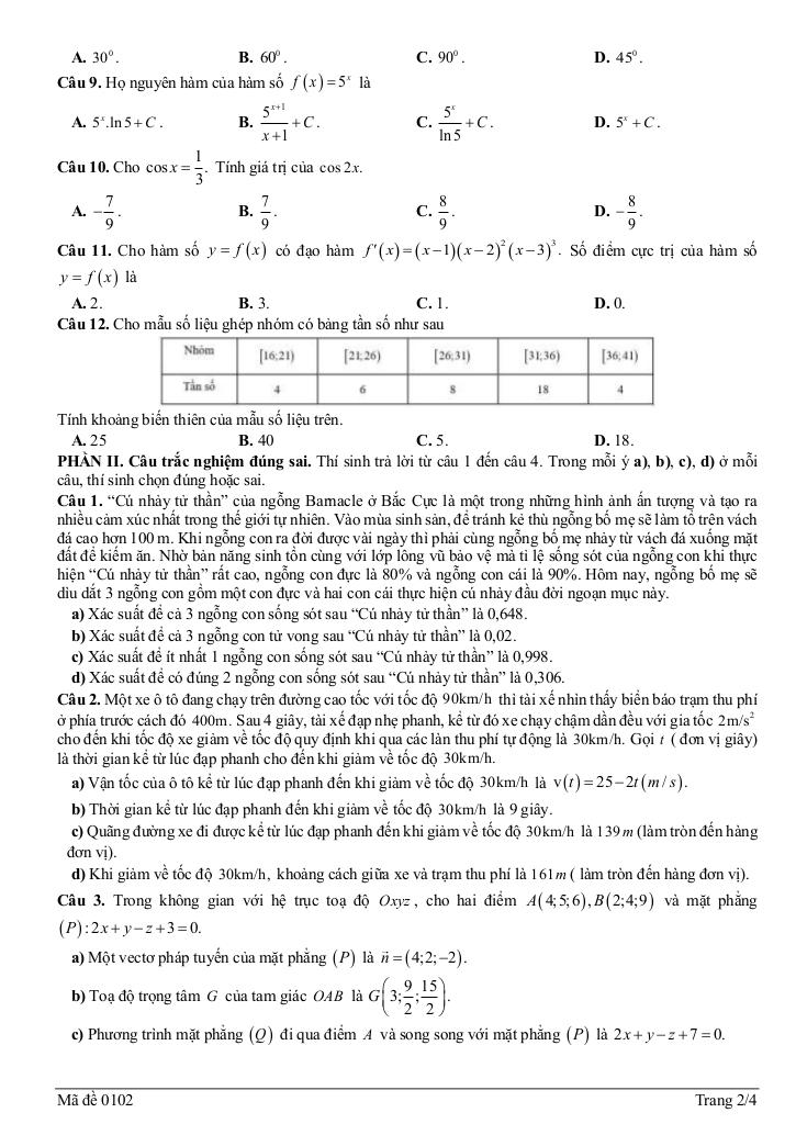 Trích dẫn Đề thi thử TN THPT 2026 môn Toán lần 2 trường chuyên Phan Bội Châu – Nghệ An: