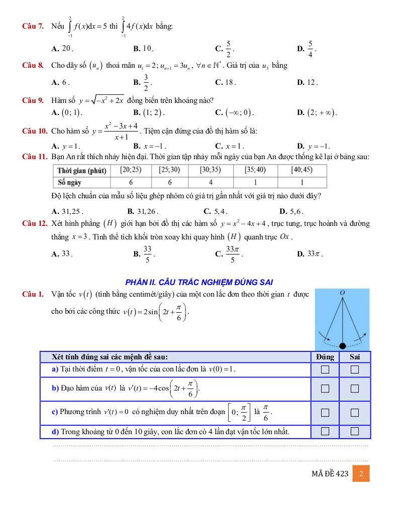 giaitoan.edu.vn giới thiệu đến quý thầy, cô giáo và các em học sinh đề thi thử tốt nghiệp THPT Quốc gia năm học 2025 – 2026 môn Toán trường THCS-THPT Nguyễn Khuyến, thành phố Hồ Chí Minh (cơ sở 4). Kỳ thi được diễn ra vào ngày 11 tháng 01 năm 2026. Đề thi có đáp án mã đề 423.