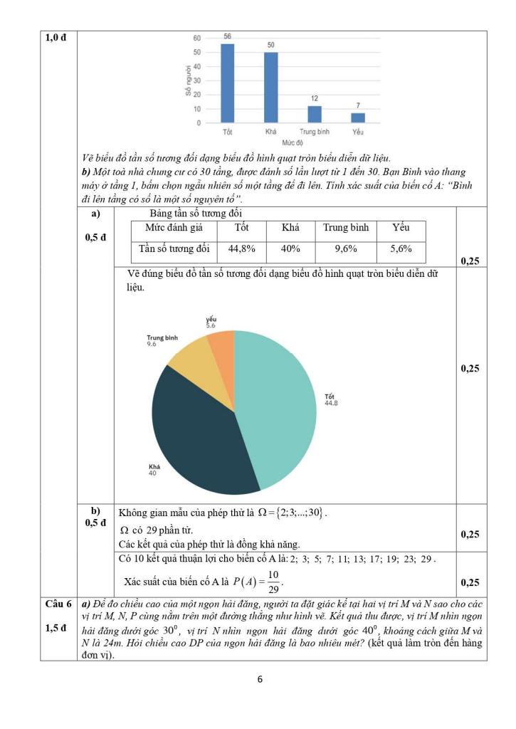+ Khảo sát đánh giá của khách hàng về chất lượng một loại dịch vụ mới, số liệu được biểu diễn trong biểu đồ sau. Vẽ biểu đồ tần số tương đối dạng biểu đồ hình quạt tròn biểu diễn dữ liệu. b) Một toà nhà chung cư có 30 tầng, được đánh số lần lượt từ 1 đến 30. Bạn Bình vào thang máy ở tầng 1, bấm chọn ngẫu nhiên số một tầng để đi lên. Tính xác suất của biến cố A: “Bình đi lên tầng có số là một số nguyên tố”.