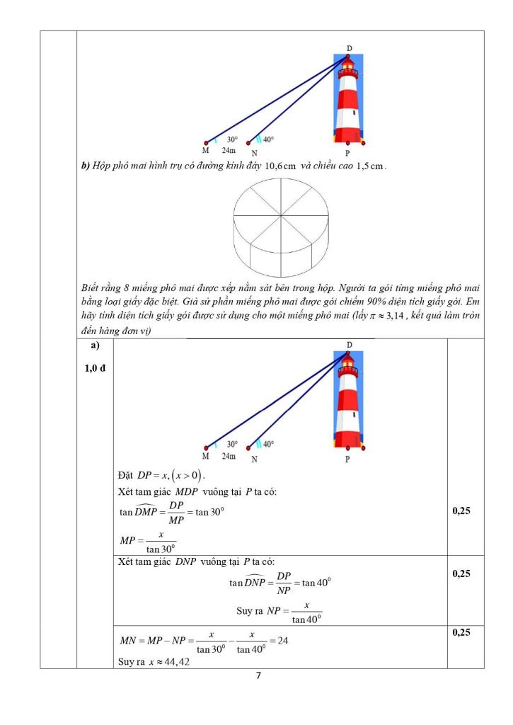 + Hộp phô mai hình trụ có đường kính đáy 10,6 cm và chiều cao 1,5 cm. Biết rằng 8 miếng phô mai được xếp nằm sát bên trong hộp. Người ta gói từng miếng phô mai bằng loại giấy đặc biệt. Giả sử phần miếng phô mai được gói chiếm 90% diện tích giấy gói. Em hãy tính diện tích giấy gói được sử dụng cho một miếng phô mai (lấy ≈ 3,14, kết quả làm tròn đến hàng đơn vị).