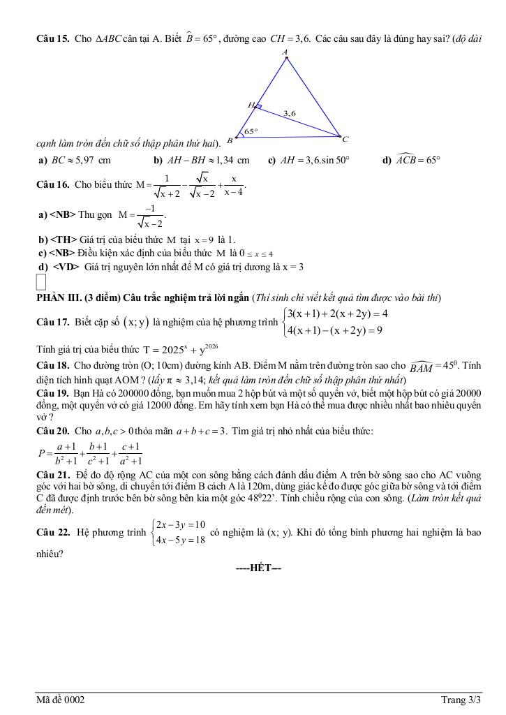 Toán học luôn là một môn học quan trọng, giúp học sinh phát triển tư duy logic và kỹ năng giải quyết vấn đề. Để hỗ trợ các bạn học sinh và giáo viên trong việc học tập và giảng dạy, bài viết này sẽ cung cấp lời giải chi tiết và đáp án chính xác cho chủ đề đề thi thử toán vào lớp 10 lần 2 năm 2026 – 2027 trường nguyễn chuyên mỹ – hải phòng, giúp bạn hiểu sâu và tự tin hơn khi làm bài tập.