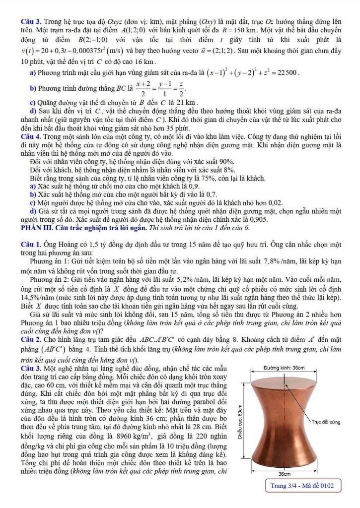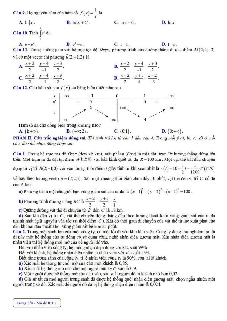 Xem thêm đáp án: đề thi thử tốt nghiệp thpt 2026 môn toán đợt 2 sở gd&đt nghệ an