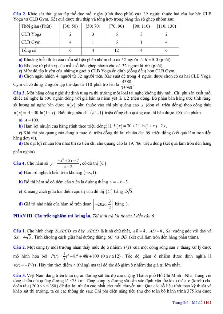 Xem thêm đáp án: đề thi thử tốt nghiệp thpt 2026 môn toán liên trường thpt – nghệ an