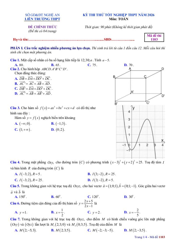 Toán học luôn là một môn học quan trọng, giúp học sinh phát triển tư duy logic và kỹ năng giải quyết vấn đề. Để hỗ trợ các bạn học sinh và giáo viên trong việc học tập và giảng dạy, bài viết này sẽ cung cấp lời giải chi tiết và đáp án chính xác cho chủ đề đề thi thử tốt nghiệp thpt 2026 môn toán liên trường thpt – nghệ an, giúp bạn hiểu sâu và tự tin hơn khi làm bài tập.