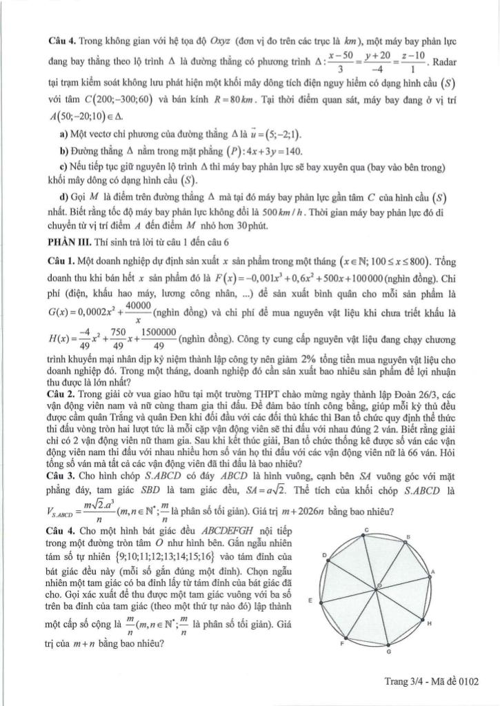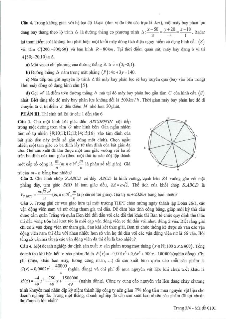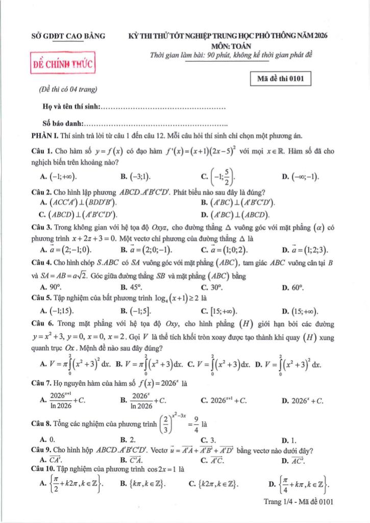 Trích dẫn Đề thi thử tốt nghiệp THPT năm 2026 môn Toán sở GD&ĐT Cao Bằng: