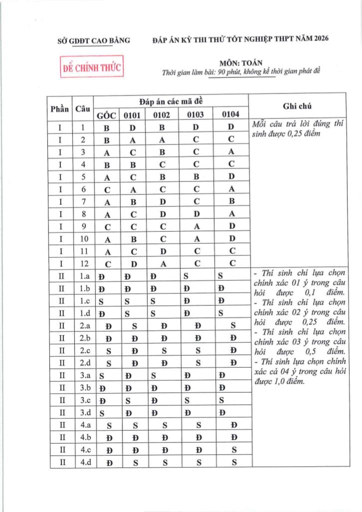 Xem thêm đáp án: đề thi thử tốt nghiệp thpt năm 2026 môn toán sở gd&đt cao bằng