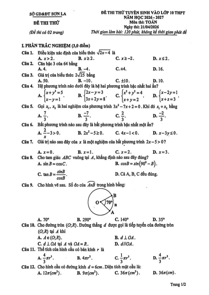 Toán học luôn là một môn học quan trọng, giúp học sinh phát triển tư duy logic và kỹ năng giải quyết vấn đề. Để hỗ trợ các bạn học sinh và giáo viên trong việc học tập và giảng dạy, bài viết này sẽ cung cấp lời giải chi tiết và đáp án chính xác cho chủ đề đề thi thử tuyển sinh lớp 10 môn toán năm 2026 – 2027 sở gd&đt sơn la, giúp bạn hiểu sâu và tự tin hơn khi làm bài tập.