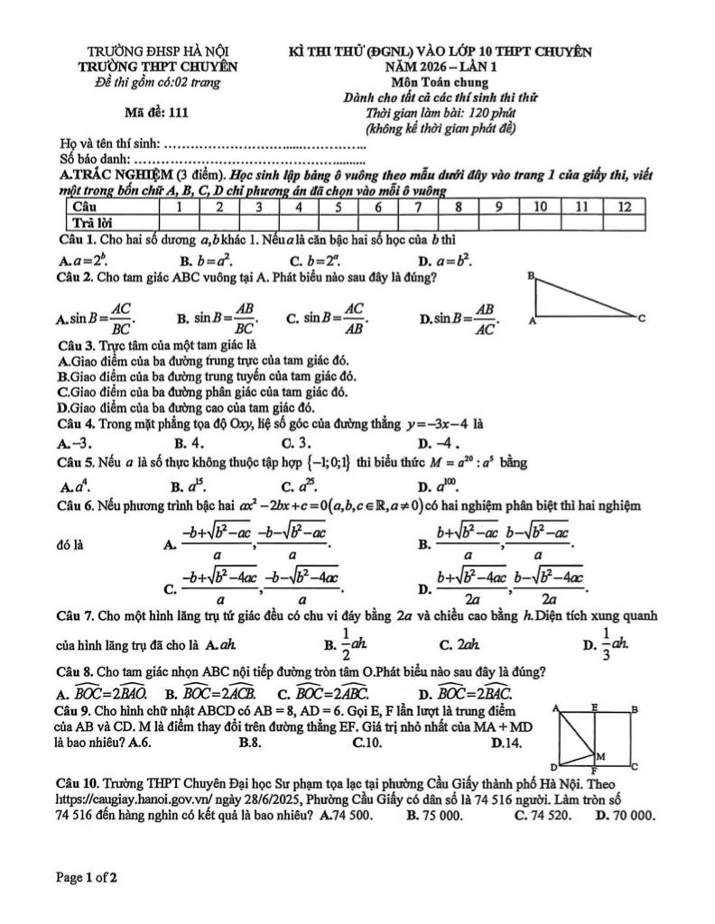 Toán học luôn là một môn học quan trọng, giúp học sinh phát triển tư duy logic và kỹ năng giải quyết vấn đề. Để hỗ trợ các bạn học sinh và giáo viên trong việc học tập và giảng dạy, bài viết này sẽ cung cấp lời giải chi tiết và đáp án chính xác cho chủ đề đề thi thử vào lớp 10 môn toán (chung) năm 2026 lần 1 trường chuyên đhsp hà nội, giúp bạn hiểu sâu và tự tin hơn khi làm bài tập.